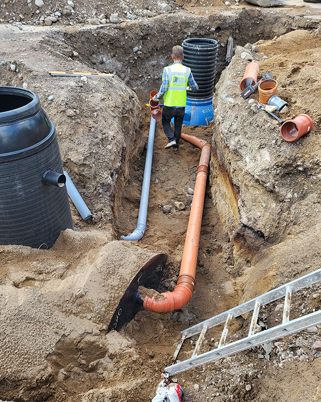 • Ulkopuoliset putkistot, routaeristeet, kiviaineksen levitys ja tiivistys